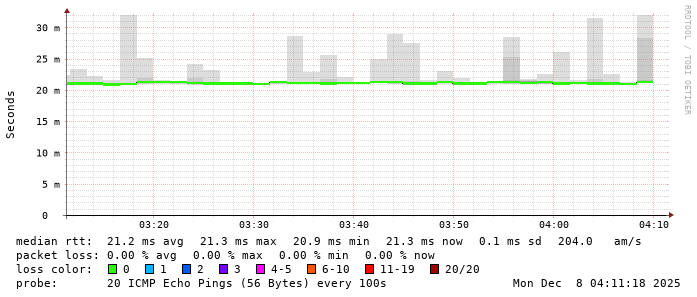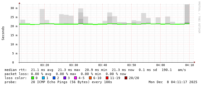 3. Median RTT 0.025200 seconds